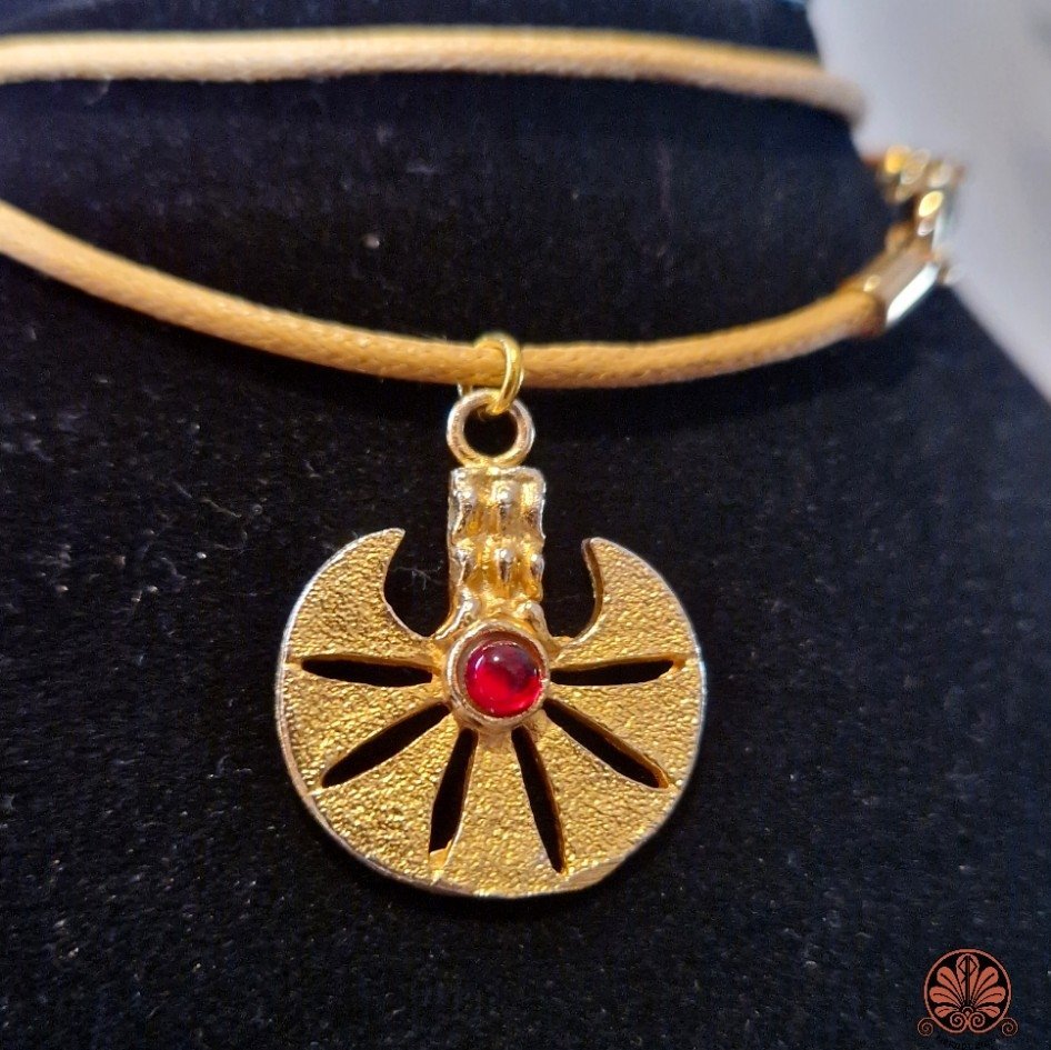 Collana ciondolo artigianale in stile antico con pasta vitrea rossa. Lavorazione satinata con intagli a forma di petalo. Ogni gioiello artigianale è un pezzo unico creato con cura e amore. Nichel free.