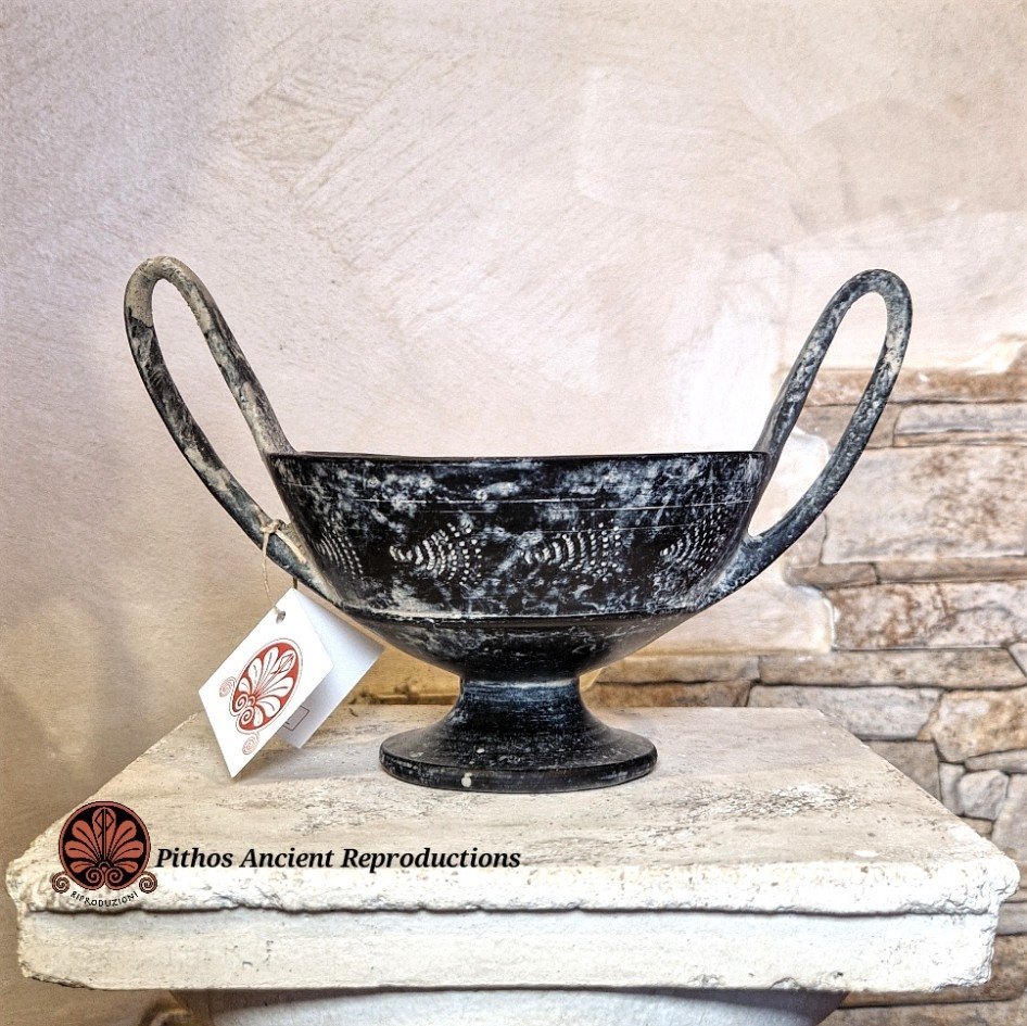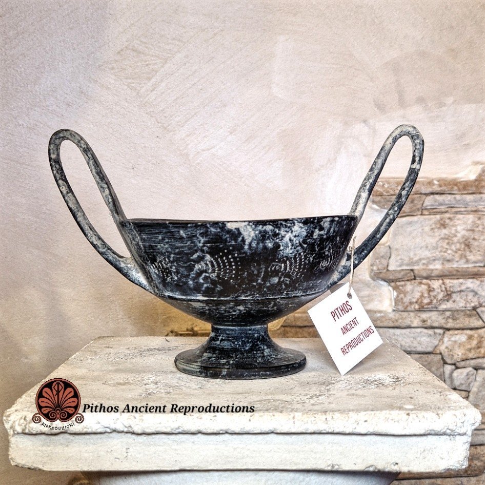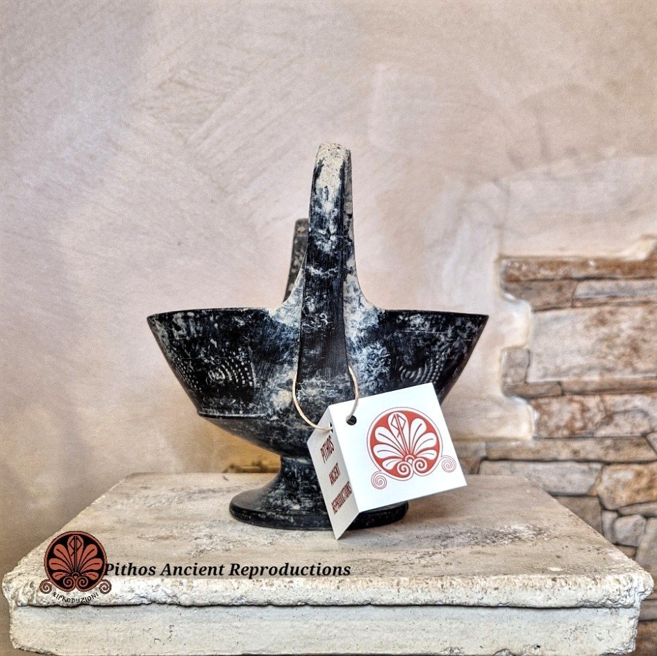 Decorato con ventagli graffiti nella parte esterna della vasca su entrambi i lati. Realizzato con le stesse tecniche utilizzate anticamente. Il colore nero è dato da una particolare tecnica di cottura, in totale assenza di ossigeno.