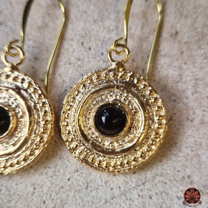 Orecchini a cerchio: tipologia molto diffusa, decorata con granuli o filigrana.