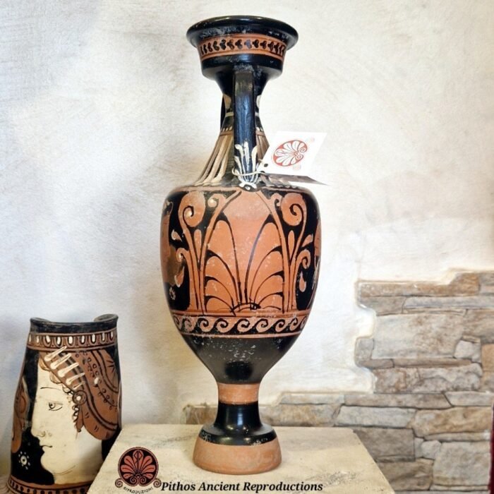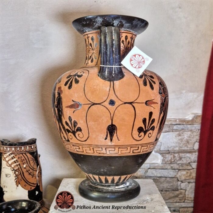 Anfora Attica con piedistallo Dioniso Ares Hermes Poseidone Amimone Nike Banchetto figure rosse