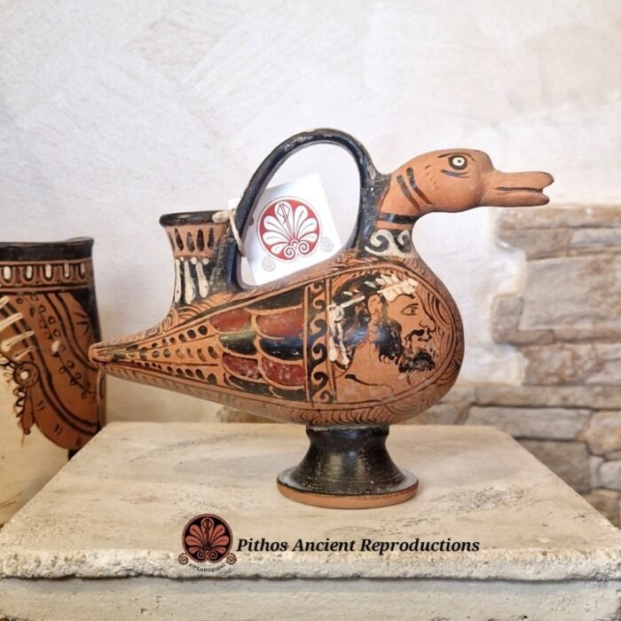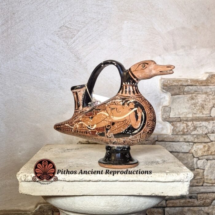 Askos a forma di papera figure rosse