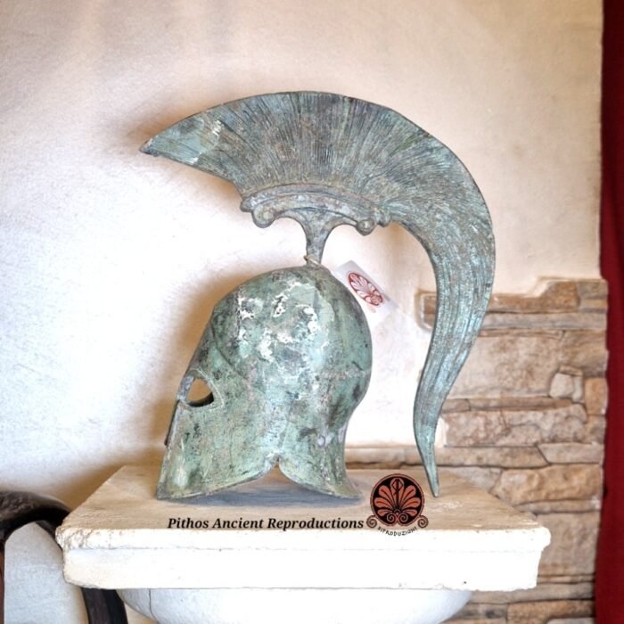 Antico elmo greco spartano in bronzo