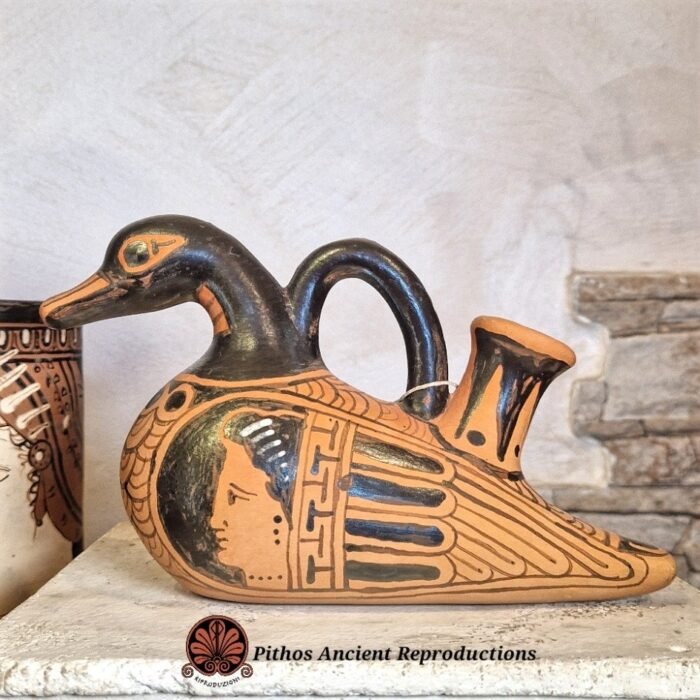 Askos apulo donne cigno pastore figure rosse