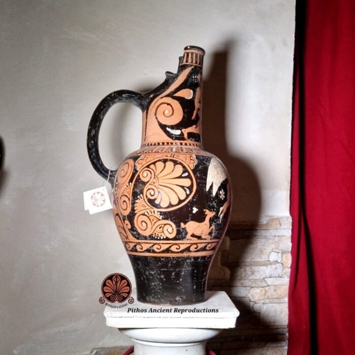 Oinochoe falisca a cartoccio figure rosse