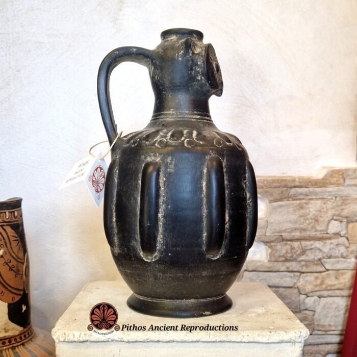 Olpe etrusca in bucchero volto
