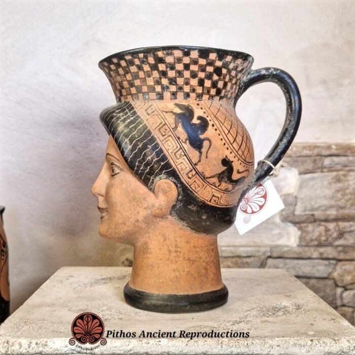 Oinochoe volto donna figure nere