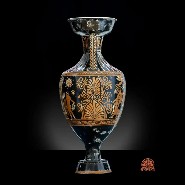 Anfora Attica con piedistallo Dioniso Ares Hermes Poseidone Amimone Nike Banchetto figure rosse